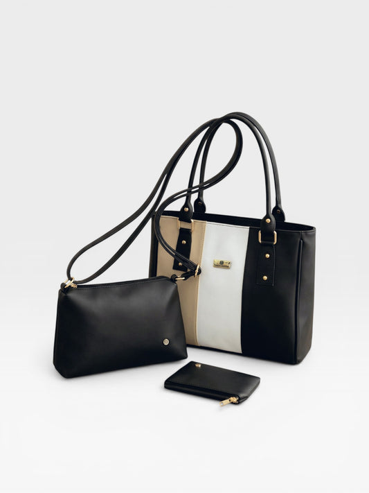Morral casual para mujer con herrajes dorados y múltiples bolsillos - Negro, Beige y Arena