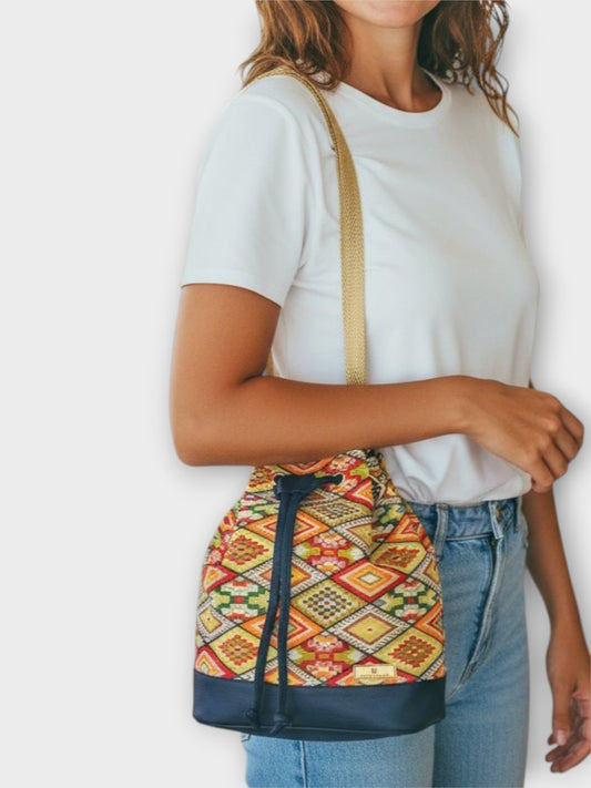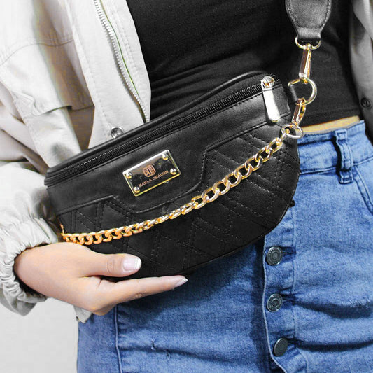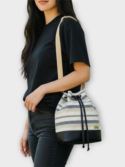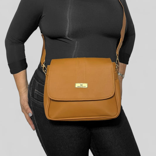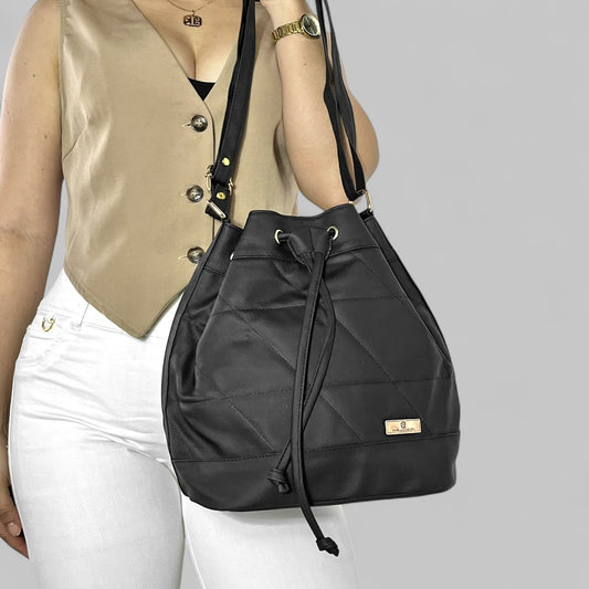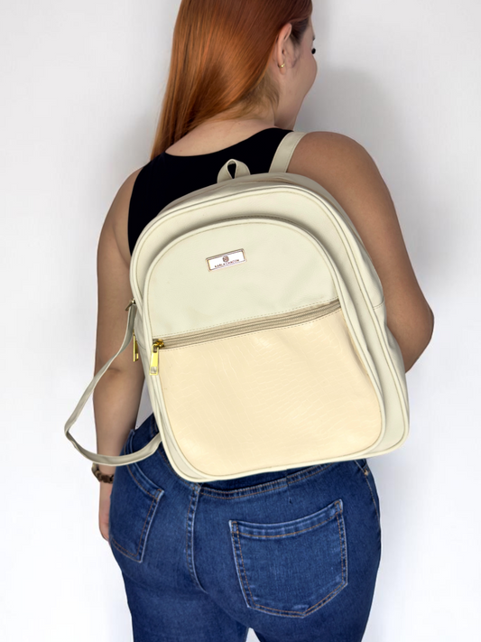 Morral casual para mujer con herrajes dorados y múltiples bolsillos - Negro, Beige y Arena