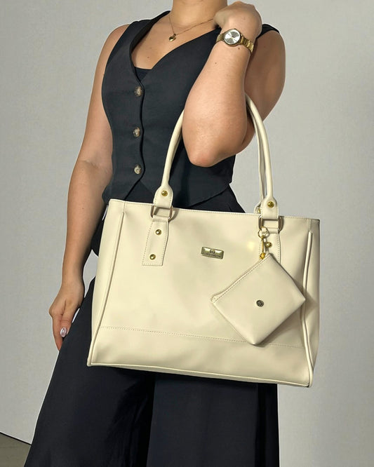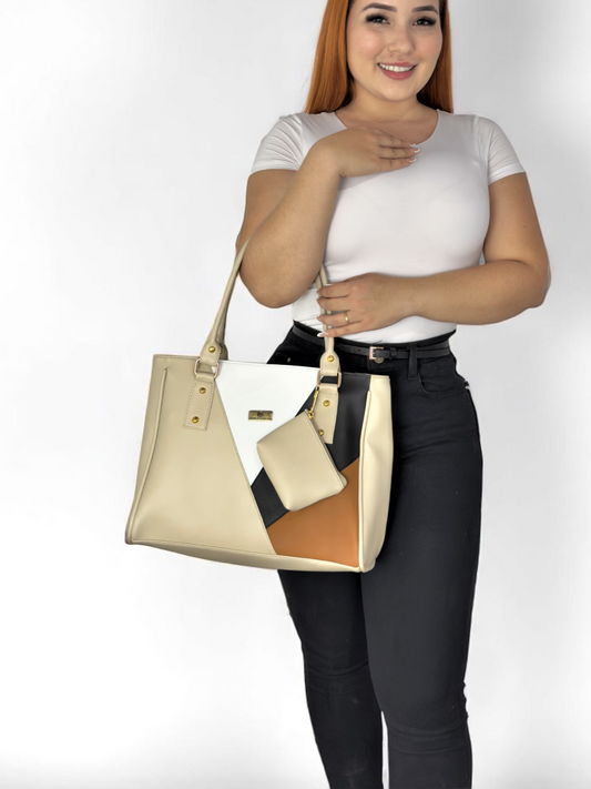 Bolso manos libres Dana Tres Compartimientos - Beige y Negro - Envío Gratis