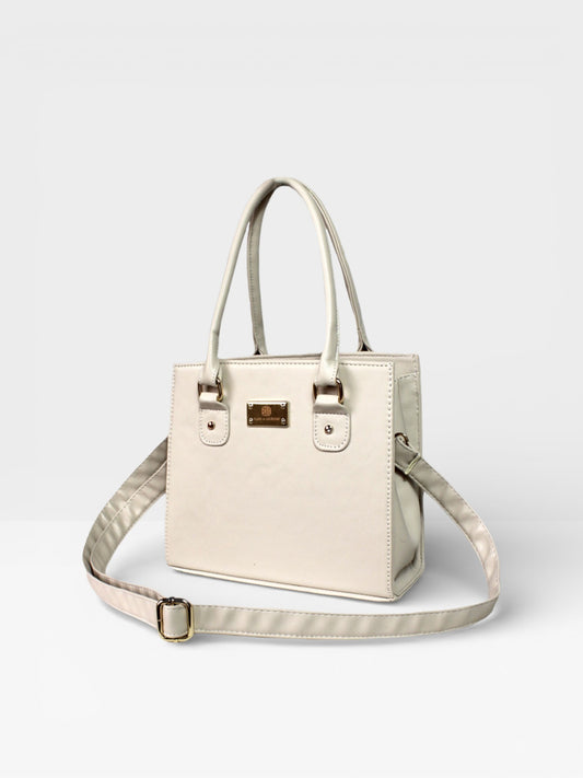 Bolso Cartera Estructurada Jess Con Correa Ajustable - Negro y Beige Claro