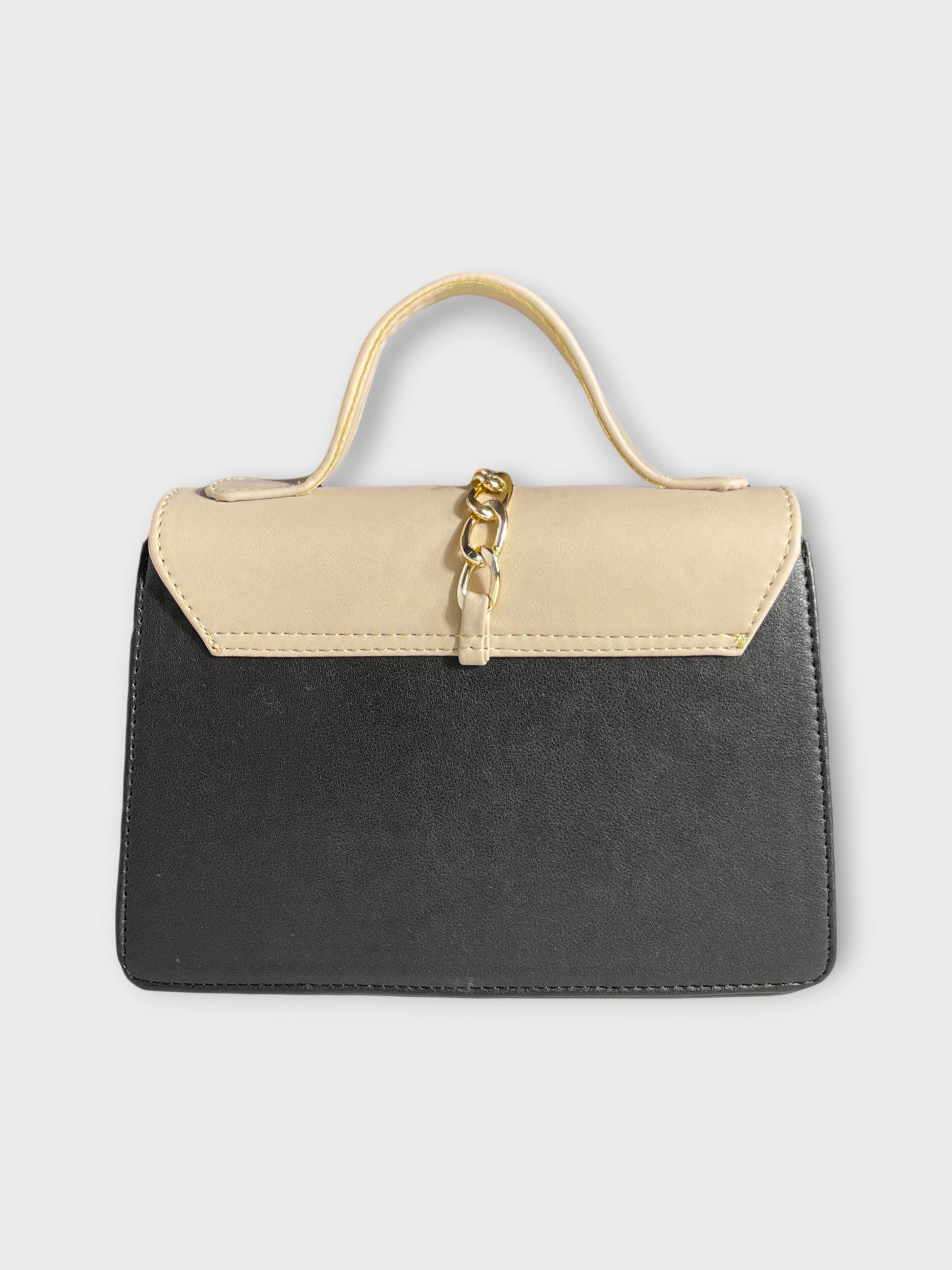 Un diseño versátil que combina tres colores en perfecta armonía. Cuenta con solapa con imán y cierre en cremallera para mayor seguridad, herrajes dorados que realzan su estilo y correa ajustable y removible para llevarlo al hombro o cruzado.